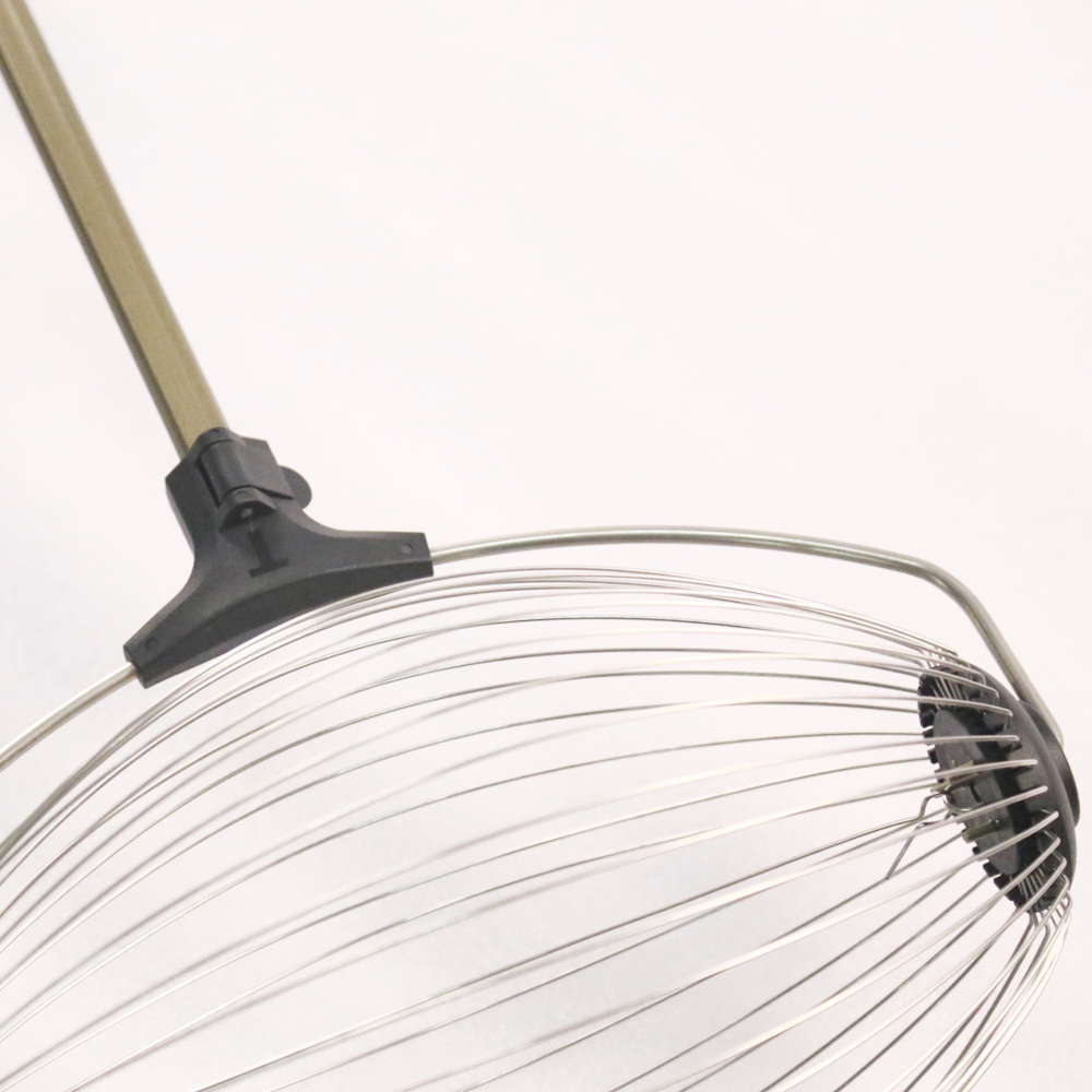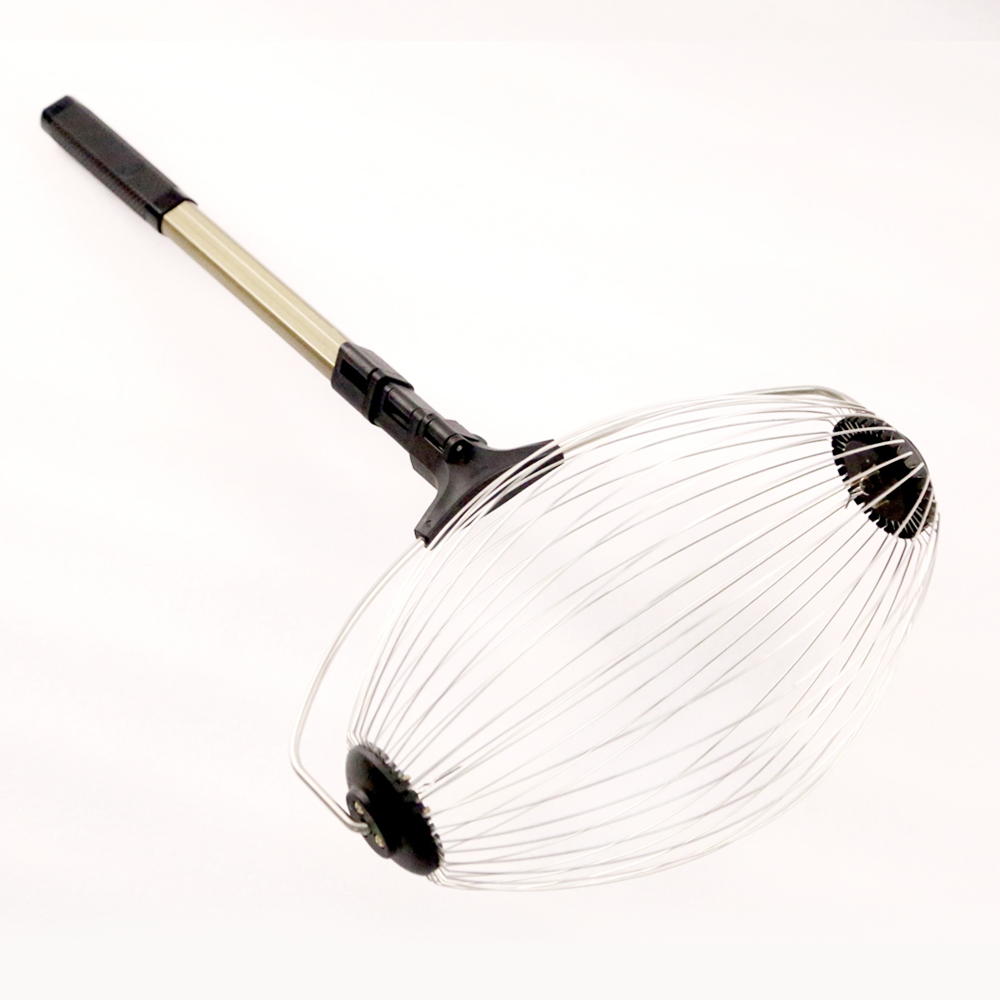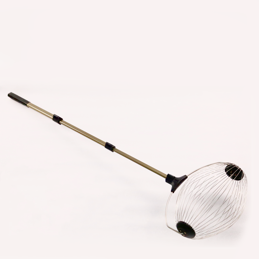 To use the ball collector, simply extend the telescopic handle and roll the wire cage over the balls. The balls squeeze between the wires and are caught within the cage.